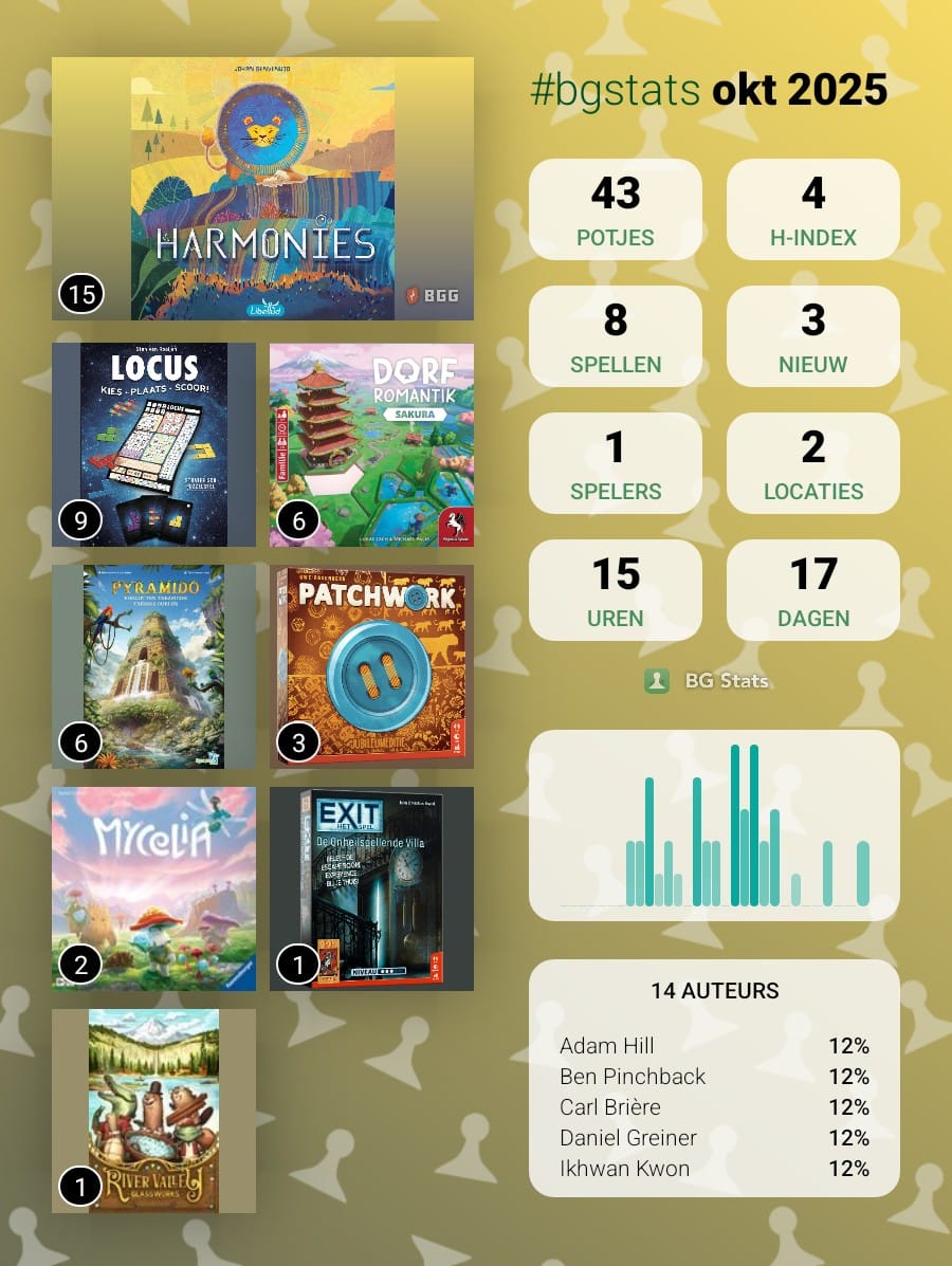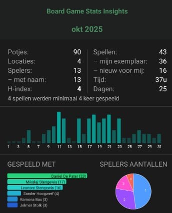 Maar dat haalde ik de rest van de maand flink in. In totaal speelde ik 90 potjes in Oktober. Uiteraard zitten daar ook kinderspellen bij, dus dat loopt altijd wel op.