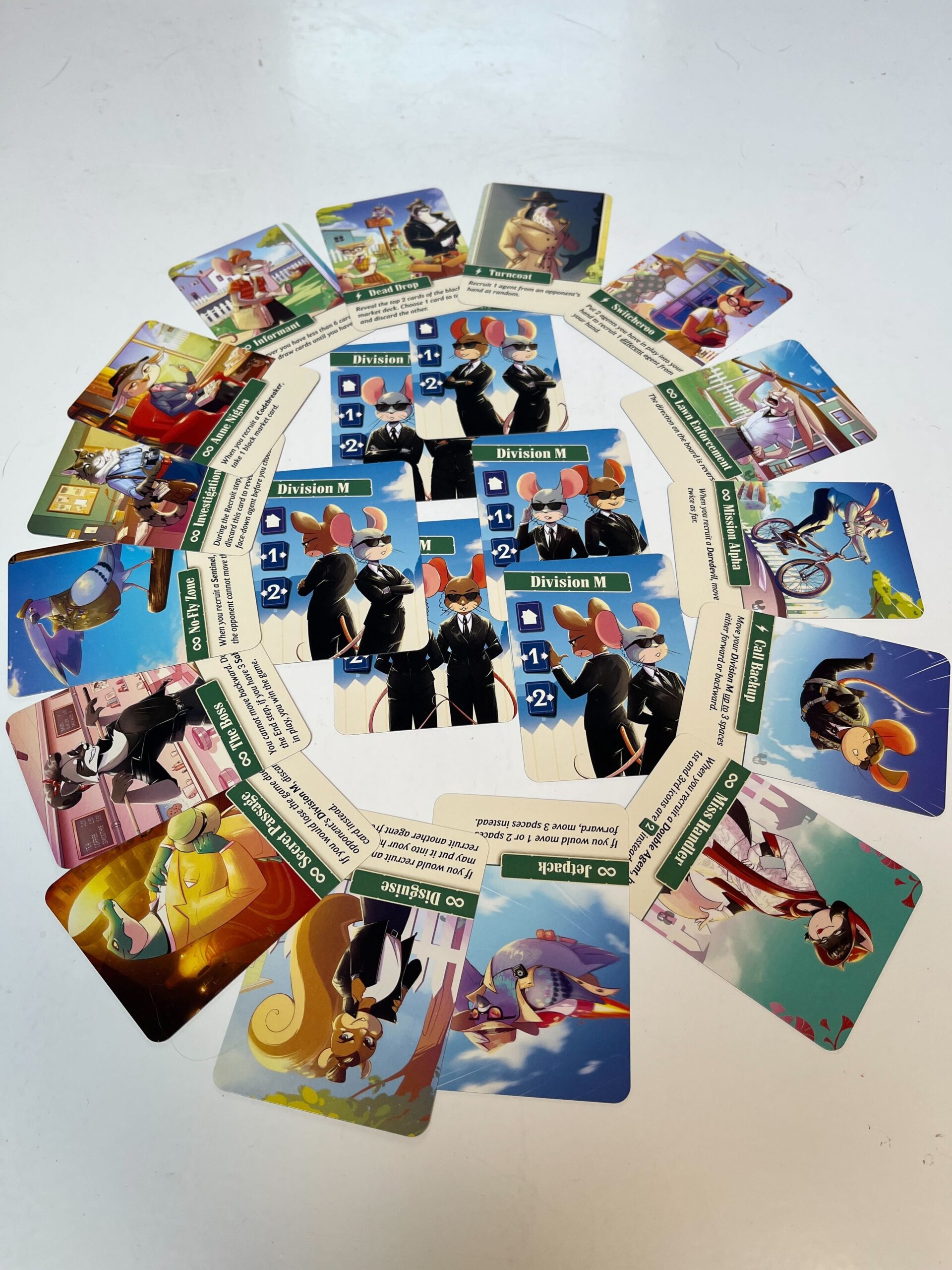 Het spel verloopt nog steeds volgens het zelfde principe waarbij een speler 2 kaarten aanbiedt, waarvan 1 zichtbaar en 1 onzichtbaar, maar bij specifieke kaarten kan er een extra meeple in het spel komen om je winkansen te verhogen. Zodra je Division M meeple exact op hetzelfde veld staat als je tegenstanders spion heb je het spel gewonnen. Nieuwe kaarten die je Division M meeple kunnen bewegen komen mee in de roulatie, maar ook een aantal nieuwe “zwarte markt” kaarten worden toegevoegd om wat meer impact te genereren.