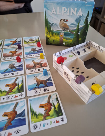 In Alpina, you should not be too hasty, especially when playing with two people. And by that I mean being quick to place your hikers. The number of players determines how many hikers you can use. With 2 players there are 8, with 4 players you only have 4. So think carefully before you place a hiker, because they are used up faster than you might think! Towards the end of the game you can of course still add cards to the grid, which will earn you extra points for your already placed hikers. But the other players will see this too and they can do the exact opposite of what you are trying to achieve. A surprise attack is impossible if you have already placed all your hikers on the playing field in the beginning. Try to place your hikers at the same pace as your opponents.