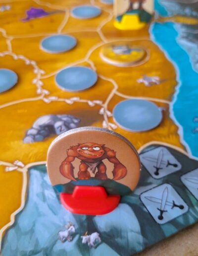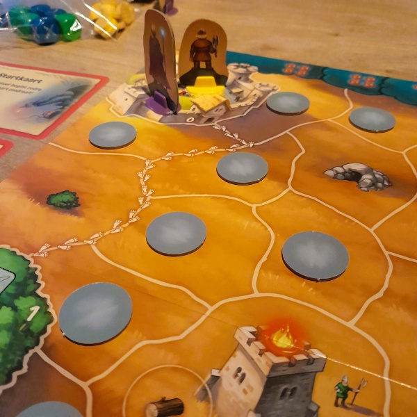Alle spelonderdelen zijn van stevig karton. Hoewel ik normaal gezien niet zo’n fan ben van die staande poppetjes met plastic voetje, voegen ze (zeker voor kinderen) wel echt iets toe aan het spel. Ik heb op dit moment voor geen enkel spel luxe speelstukken, maar ik zie dat bij dit spel wel echt voor me. Dan wel officieel aangekocht ofwel ge-3D-print. Het spel is op zichzelf al heel mooi, maar met miniaturen zou het natuurlijk helemaal af zijn.