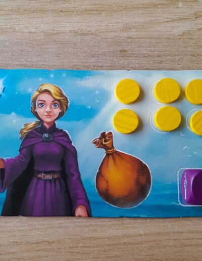 Tokens are needed to complete assignments, but are also needed during the course of the game. For example, you need money to buy torches, or wood to keep the dragon at bay. Tokens are not only positive, there are also tokens that wake the dragon or cause an extra Bunting to appear on the board.