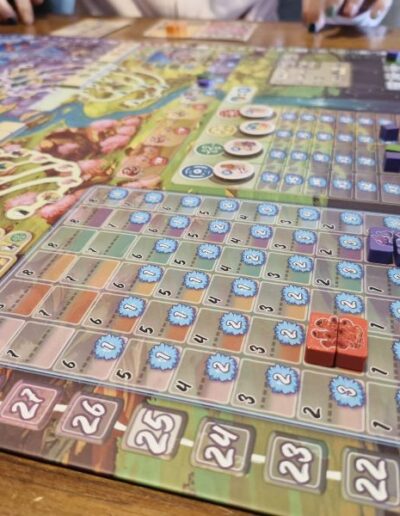 Ook het bord en de verdeling van de acties en de gebieden zit ingenieus in elkaar. Het dwingt je soms om te kiezen voor tracks die je totaal niet gaan geven wat je nodig hebt, maar waar je heen zal moeten om Villagers te kunnen her activeren of om kaarten te gaan halen. Die tracks zijn noodzakelijk, maar leveren verder relatief weinig op en voelen daardoor nog wel eens als een verloren beurt. Elke voordeel komt in dit spel met een nadeel en andersom, waardoor je continue moet afwegen: wat is wijsheid?