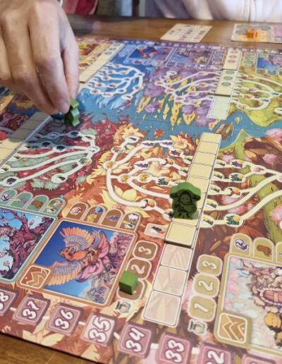 Arborea is currently high on my favorite list. There’s so much to it, and the playing field is constantly changing. The sheer number of choices, the balance between different facets of the point system—it’s all perfectly structured. The game is incredibly layered. And while the board and this explanation might look like a lot, it’s actually very clear. You score points in the game through resources, and at the end of the game, you score points with your spirit, the value of your goals, and most importantly: the animals in your ecosystem. The goal is clear, and although you might feel like you have to focus on many things at once in the first few games, you’re not overwhelmed with focus points. Once you get the hang of it, it becomes a matter of figuring out when to push the right buttons.