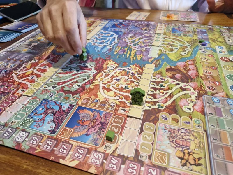 Do you take your Villager on a track where you have no business, but can take three extra actions because you’ve made many gifts to the Sage there, and those are worthwhile? Do you step off early to beat another player and get a Creature from the supply, even though this yields far fewer actions on a path? Do you collect resources that yield a lot of points, but then give your neighbor the opportunity to play a very expensive card in their Ecosystem? When do I use my spirit for extra actions? But also: in what order do I activate my Villagers? Sometimes you need the yield from one Villager to make the other’s walk even more fruitful. The choices you make, thanks to the versatility and the number of actions available, are so much more than just “I get off and walk.”