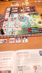 Klinkt als veel, ingewikkeld en onsamenhangend, nietwaar? Helemaal omdat het speelbord en het spelerstableau relatief klein zijn en daarmee alle spullen die je kan vergaren ook, wat het geheel wellicht wat hysterisch en onoverzichtelijk maakt. Dit is ook direct de meest gelezen kritiek en ik snap ‘m wel. Men mist samenhang, zowel in acties, in hoe deze zich tot elkaar verhouden en in de thematiek. Thema’s lijken ietwat random gekozen om de mechanismes aan op te hangen, waardoor er geen logisch verhalend geheel ontstaat. Althans voor de meeste mensen.