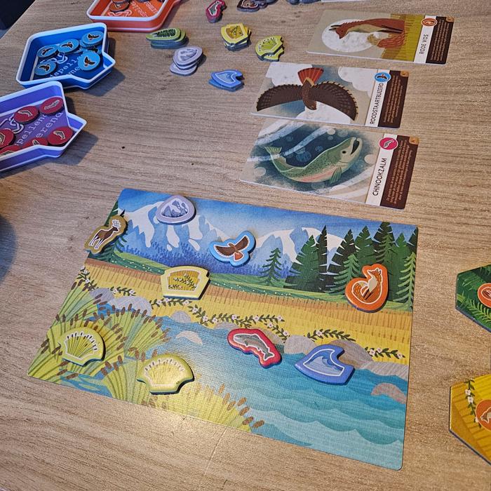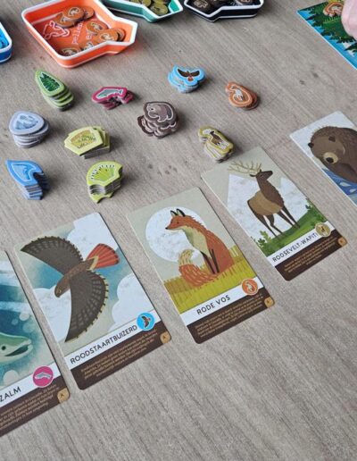 Toch denk ik dat de doelgroep vrij specifiek is. Onder de zes jaar kunnen kinderen het meestal nog niet zelfstandig spelen. Met vier spelers duurt het voor veel zesjarigen net te lang. En vanaf een jaar of acht kunnen veel kinderen eigenlijk al prima (mee)spelen met het originele Cascadia. Daardoor voelt het een beetje als een spel voor zes- à zevenjarigen, en dan het liefst met twee of drie spelers.
