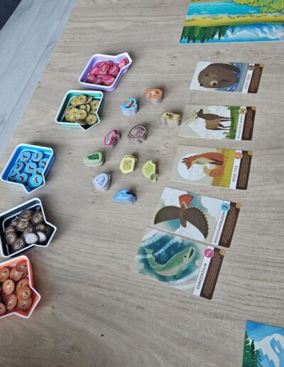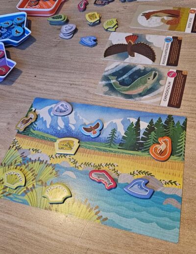 Still, I think the target audience is quite specific. Children under six usually can’t play it independently yet. With four players it tends to take a bit too long for most six-year-olds. And from around eight years old, many kids can already join in with the original Cascadia. As a result, it feels mostly suited for six- or seven-year-olds, preferably with two or three players.