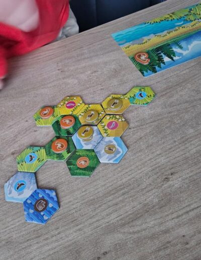 On the other hand, there’s Mikolaj (7.5), who can already play the family variant of Cascadia. For him, Cascadia Junior felt a bit like a step backwards. That said, he still enjoyed playing it. Despite my own reservations about the luck factor, he had a good time with it.