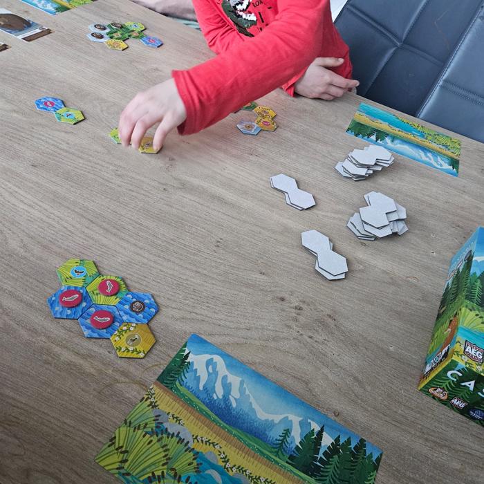 Aan de andere kant heb je Mikolaj (7,5), die eigenlijk al prima de familievariant van Cascadia kan meespelen. Voor hem voelde Cascadia Junior daardoor een beetje als een stapje terug, al moet ik eerlijk zeggen dat hij het nog steeds best leuk vond om te spelen. Ondanks mijn eigen twijfels over het gelukselement vermaakte hij zich er prima mee.