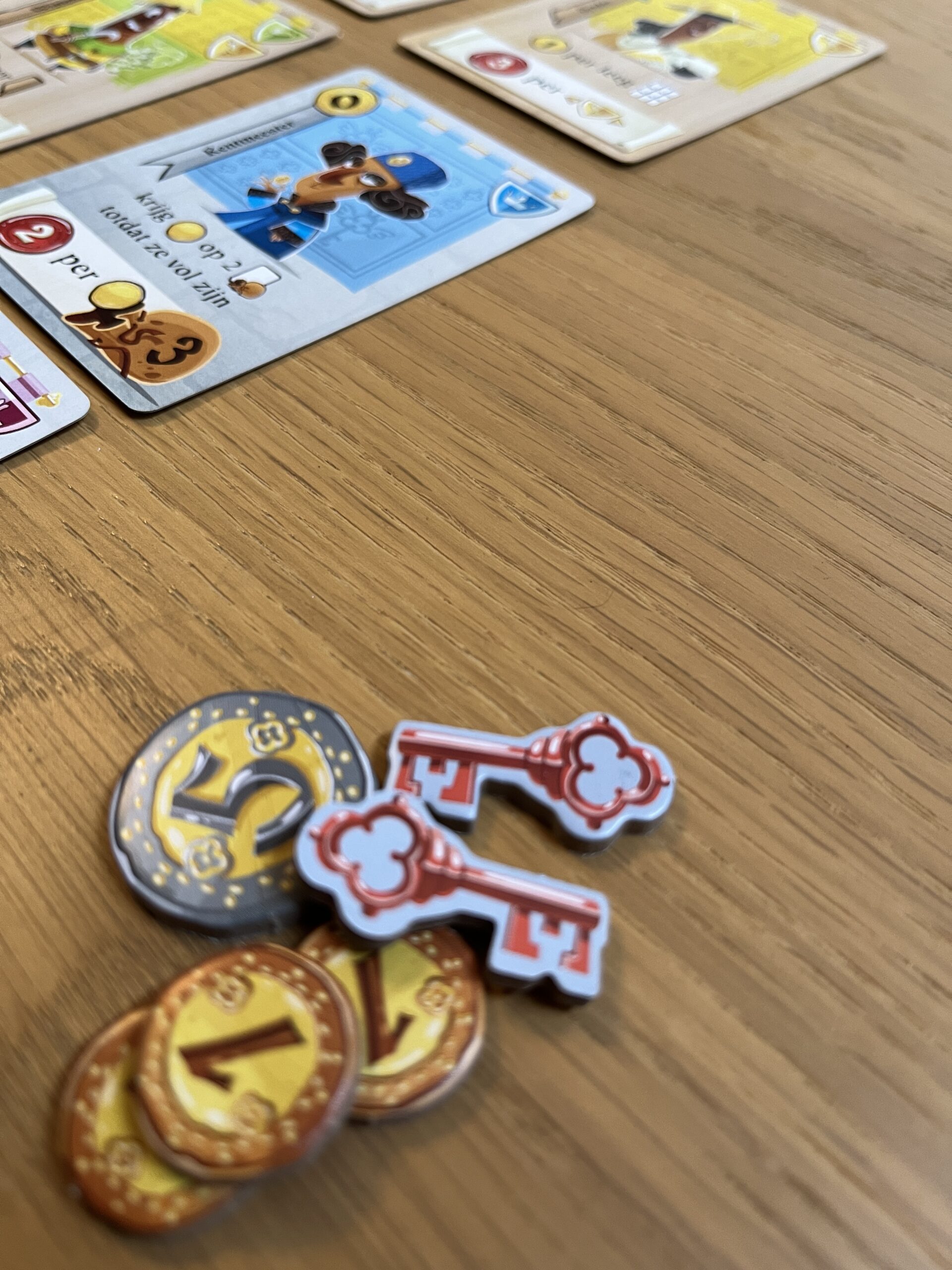 Ik ben heel erg positief over Castle Combo, maar als ik toch een puntje van kritiek moet uiten is dit vooral op de kartonnen componenten. De sleutels en munten worden uitgedrukt en waren relatief makkelijk te beschadigen. Voorzichtigheid is hier noodzakelijk. Het spel zou zeker een componenten upgrade kunnen krijgen met bijvoorbeeld metalen munten en sleutels, maar dit is dan de prijs misschien niet waard.
