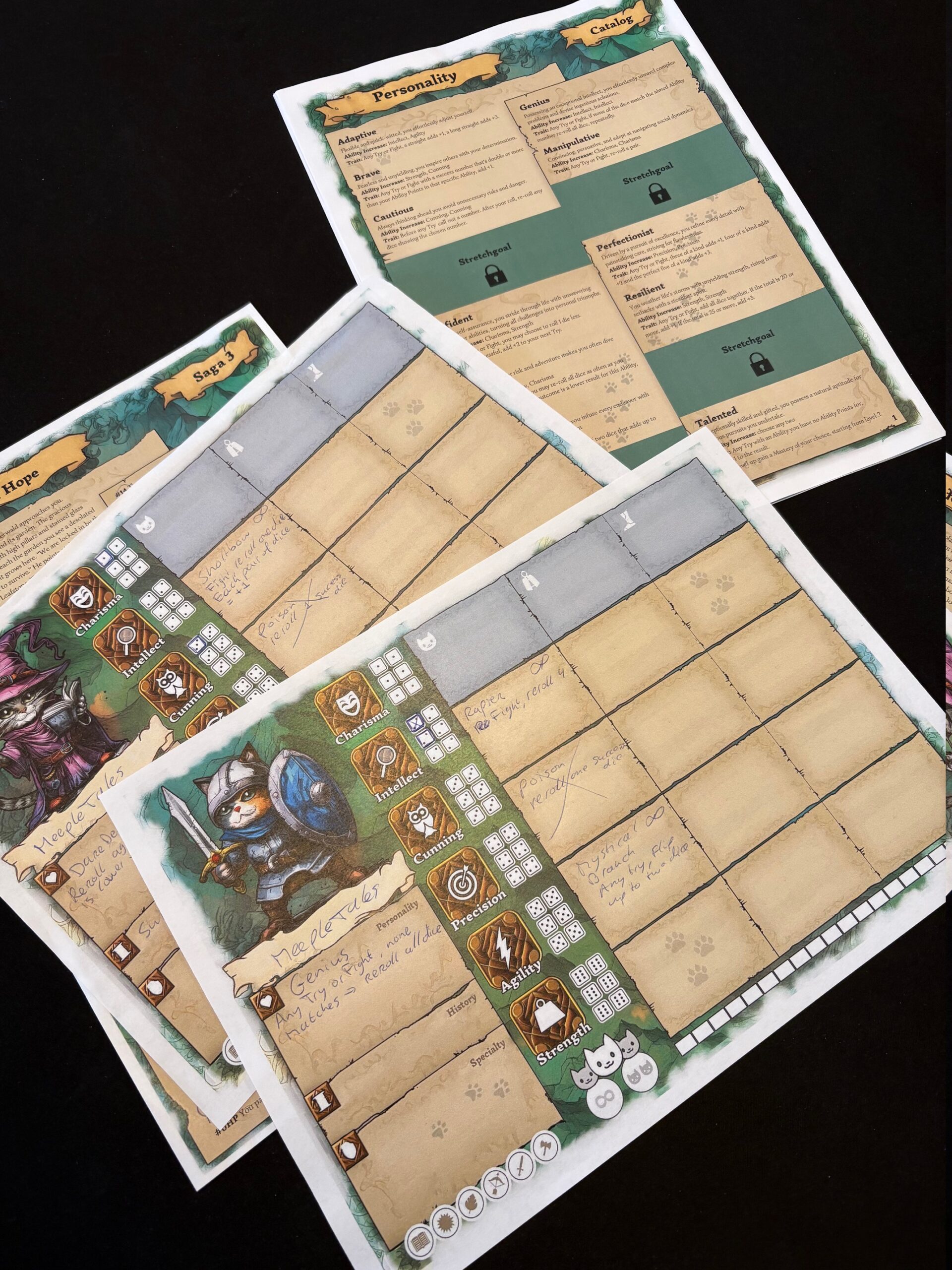 Cat Saga is a Print And Play game, which means: you download the files, print them out, and you can start. You only need 5 standard dice and a pen.