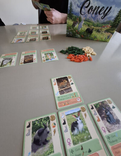 Coney and Hens are two games by the same creator. In itself, I have nothing against this game designer, because his game ‘Fall’ plays really nice! My conclusion is that Coney is certainly not a bland copy of Hens, but a, for me at least, rather superfluous successor. So I would definitely not buy both of them and my preference goes to Hens. Unless, of course, you are an avid bunny lover. The drawings on the bunny cards are very beautiful and cute!