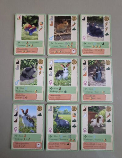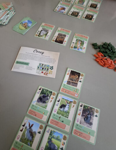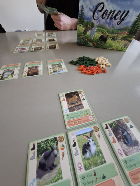 The game is completely along the same lines as ‘Hens’, except that Hens is less frustrating and plays a whole lot smoother. With Coney, I also had the feeling that you are really in your own little world and are busy on your own farm checking 100 times whether that one card is allowed there. With Hens, I had that feeling much less. Also because in Hens you can draw cards from each other’s discard pile, so there you take much more into account what the others are doing and which cards you should or should not discard. So there’s a lot more interaction going on in Hens than in Coney.