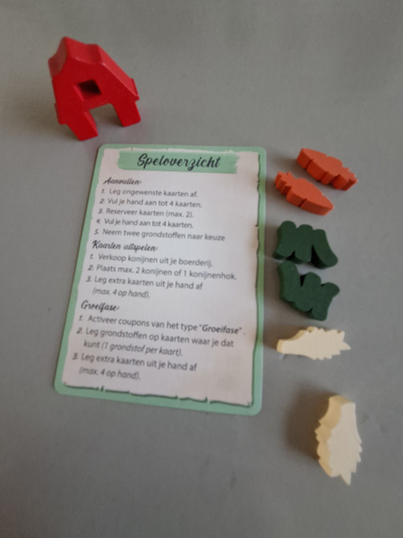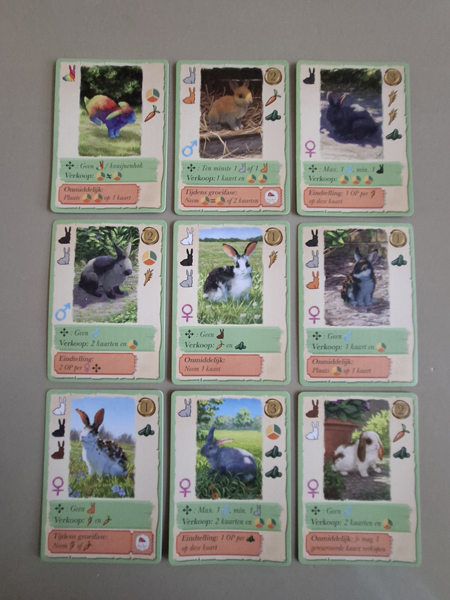 Ik vond het ook niet vanzelfsprekend om aan de nodige grondstoffen te geraken om konijnen uit te spelen. Daarenboven zou je punten kunnen scoren door grondstoffen op kaarten te verzamelen, maar dat zijn dezelfde grondstoffen als waar je konijnenkaarten mee kan uitspelen. En omdat de grondstoffen al zo schaars zijn, had bij ons dus uiteindelijk nooit iemand grondstoffen op kaarten liggen. Je kan ook kaarten uit je boerderij verkopen om aan grondstoffen te geraken. Maar daar is dan weer het frustrerende dat, wanneer 1 speler dat niet doet, deze speler gegarandeerd 9 kaarten in zijn speelveld heeft liggen en het spel zo beëindigt nog vóór jij nog maar in de buurt van een volle boerderij komt.