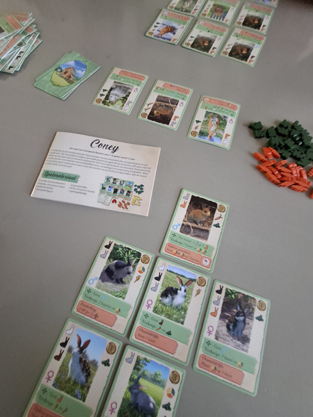 I initially found Coney to be a bit of a frustrating game. The placement rules are easy to understand, but not easy to apply. So look carefully at the placement rules when you have to choose cards to place in your farm later. More cards were found to be bad than useful, so the draw pile went down quickly.