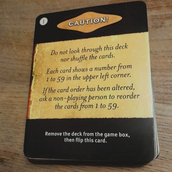 As with all these types of games, you can only play it once because then you will know the solution(s). However, since this game only consists of cards and you don’t have to destroy, change, write down or anything like that, you can easily pass on or sell this game after you have finished playing it.
