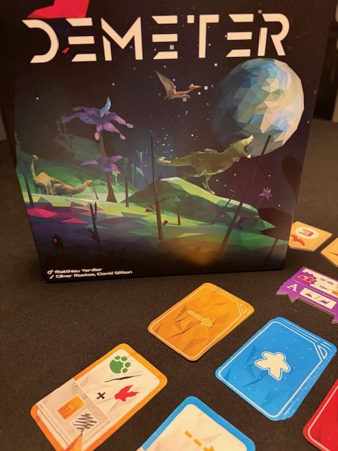 Demeter is een zeer vermakelijk flip and write spel waarbij je lekker bezig bent om van alles in te kleuren. Er zijn meerdere mogelijkheden en strategieën waarbij je een keuze moet maken. Je kan het lang niet allemaal doen. Demeter speelt vrij snel maar je moet toch wel even wat nadenken. Er is een onderlinge strijd in wie het snelst een complete dinosoort ontdekt (dan krijg je meer punten) maar verder ben je vooral bezig om je eigen spelersblad goed in te vullen. Ik speel het vooral solo, even lekker 20 minuten op de bank hier en daar wat inkleuren. Het is moeilijker dan bijvoorbeeld Clever maar makkelijker dan bijvoorbeeld Three Sisters. Echt een spel in het midden. Niet te makkelijk, je kan niet alles even snel inkleuren, maar wel goed overzichtelijk (zeker als je het een paar keer gespeeld hebt). Redelijk kort spel met veel mogelijkheden. De actie zijn duidelijk en goed uitgewerkt. Kortom, een goed flip and write spel. Ik geef het graag een 8.