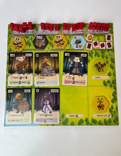 Het spel wordt gespeeld op het speelbord dat het bos Emberleaf voorstelt. Je gaat bouwen, verkennen, grondstoffen verzamelen, gevaarlijke gebieden veilig maken én helden aanwerven.