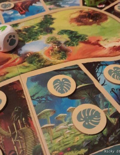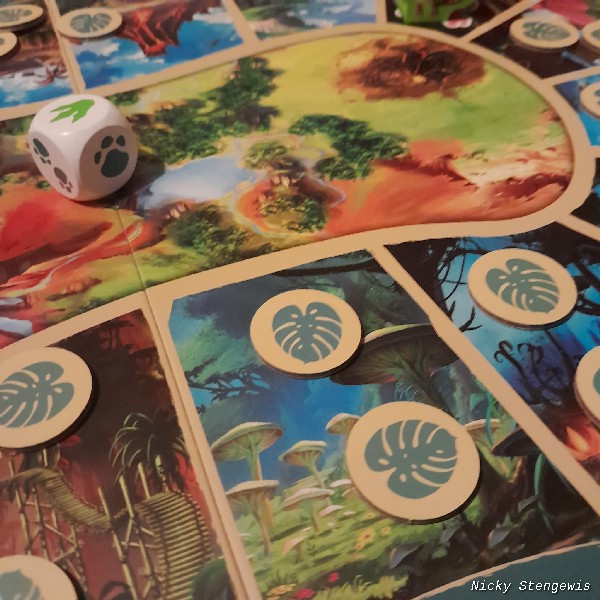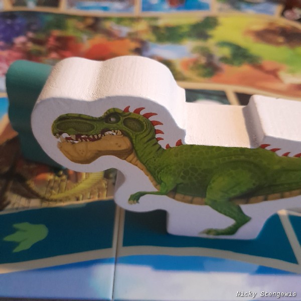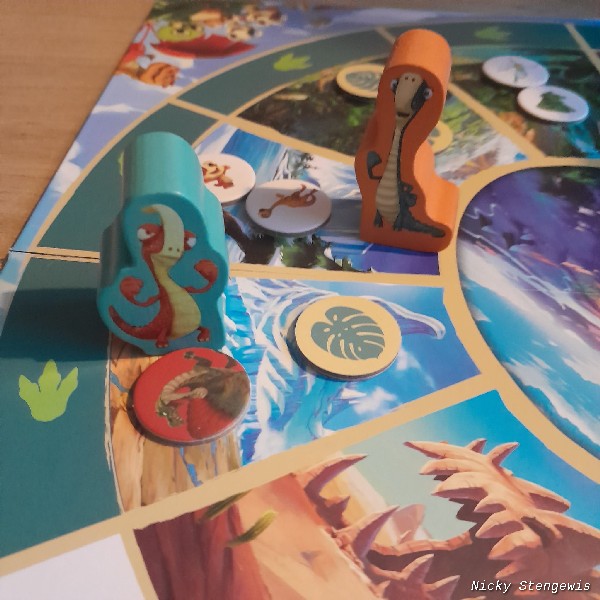 The game itself unfortunately does not amount to much, walking around and collecting chits. In which the die actually determines almost everything. That’s a shame. Hitchhiking with the gigantosaurus is a nice extra element to the game and keeps it from getting extremely boring. The very youngest players could probably still use some help with deploying the gigantosaurus.