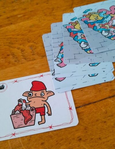 • The Goblin card: at the start of the game, each player receives a goblin with a laundry basket. This has a color (and a symbol). At the end of the game, extra points can be earned for clean laundry of the same color as the goblin.