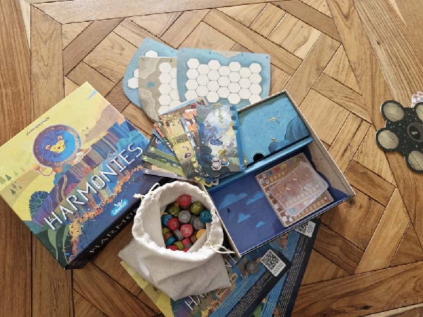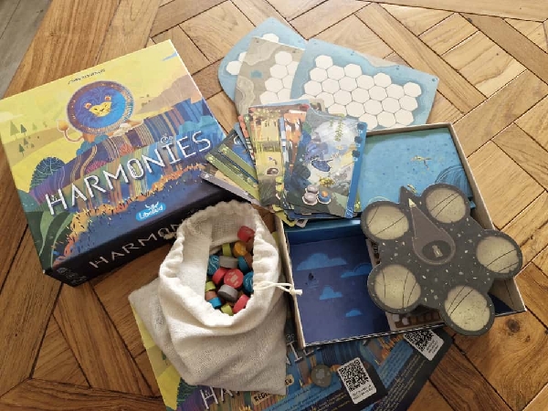 Harmonies voelt een beetje als een liefdesbaby tussen verschillende spellen. Zo’n samensmelting die eens niet voelt als “meer van hetzelfde” maar als een goede combi van mechanismes die complementair aan elkaar blijken. Hoewel het spel zijn naam niet te danken heeft aan het harmonieus samengaan van deze mechanismes, dekt dat wel de lading. Met een drafting systeem, a lá Azul, het vervullen van patroonopdrachten a la Reef en de prachtige vormgeving van Maëva da Silva, die je kan kennen van When I Dream en Mysterium Park, haal je een ware parel in huis die perfect in harmonie is.