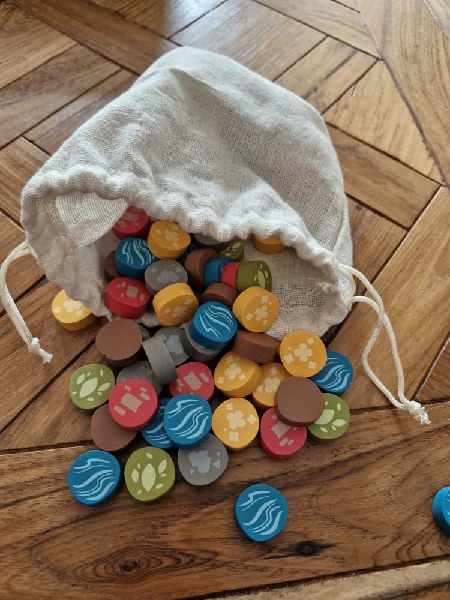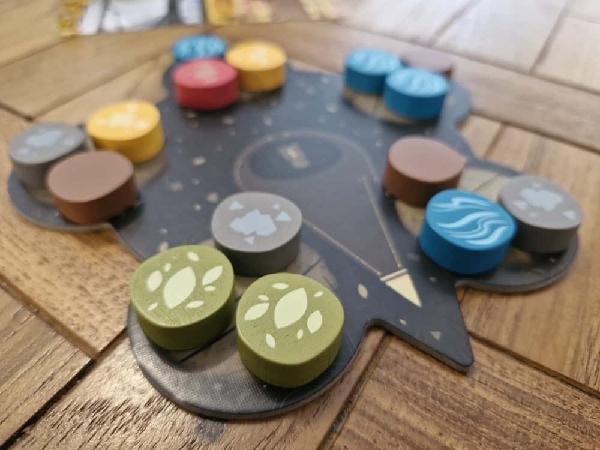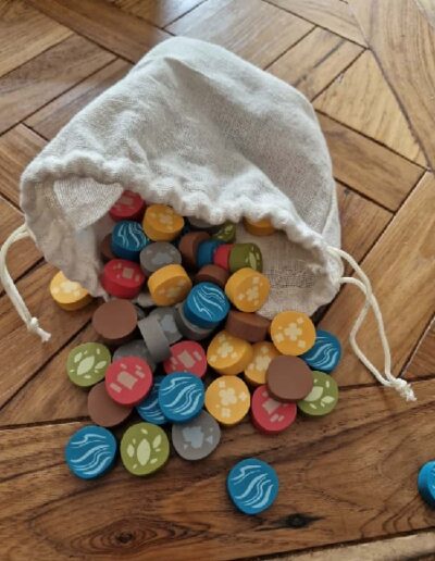Kunnen we het asjeblieft nog één keer hebben over de prachtige vormgeving. Ik heb zelf niet heel veel spellen in de kast waar Maëva da Silva haar aandeel in heeft gehad. Maar een kijkje in haar portfolio leert mij wel dat dit absoluut een van haar meesterwerkjes is. Het is een overdaad aan kleur die nooit als te veel of bombastisch voelt of het spel te kort doet. De prachtige natuurwereld die zij weet te schetsen doet dit spel de abstractie ontstijgen om je vervolgens alsnog mee te nemen in een prachtige fantasiewereld zonder al te sprookjesachtig of feeëriek te worden, zoals heel veel natuurspellen dat wel doen. (Wat ik overigens ook helemaal niet erg vind). Ook hierin schuilt een wonderbaarlijke harmonie die voor mij precies klopt.