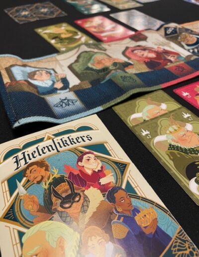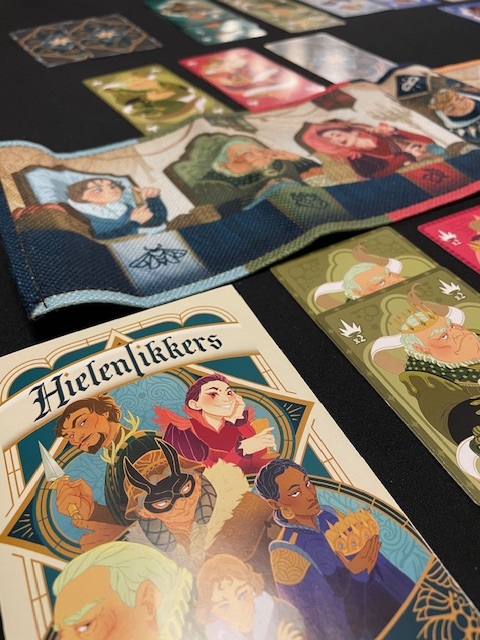 Het is een leuk en simpel spel met verrassend veel tactiek. Je kan elkaar lekker dwarszitten en het spel golf op en neer. Telkens als jij aan de beurt bent geweest, denk je dat je voorstaat en veel punten gaat scoren. Maar dan komt de beurt van een tegenstander….de kleuren die jij gespaard hebt, worden opeens negatief en je moet in jouw beurt weer veel herstellen. De speciale kaarten (spionnen, moordenaars, edelen en bewakers) zorgen voor meer soorten acties en maken het spannender. Hielenlikkers is minder geschikt voor mensen die graag ver vooruit willen plannen, omdat de situatie constant verandert en de punten na elke ronde heen en weer vliegen, ook al worden ze pas aan het einde geteld. Het is geschikt voor een verjaardagsfeestje of een kleine bijeenkomst, en toegankelijk voor de meeste mensen. Ik geef Hielenlikkers een 8.