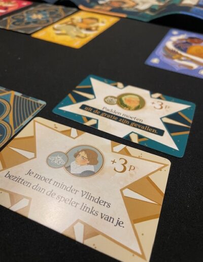 - De Edele (staat twee keer op): Deze kaarten zijn dubbel zoveel waard. In je eigen gebied leveren ze dubbele punten op. Aan tafel tellen ze dubbel voor de meerderheid aan de boven- of onderzijde. Ook bij een tegenstander tellen ze dubbel, zowel positief als negatief.