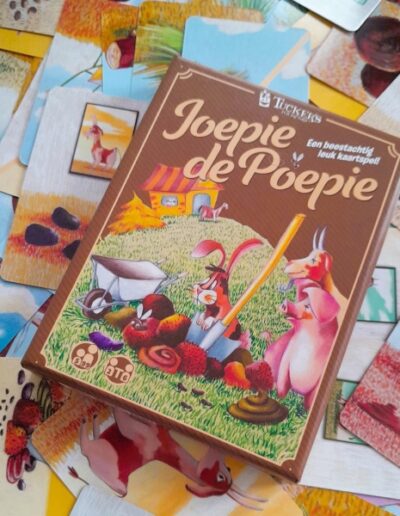 After playing, we were left with some questions that weren’t answered by the rules. For example, can one player collect multiple poop cards of the same animal to hinder the others? And does the wheelbarrow block the shovel in any way? Or does it only protect the player who plays the wheelbarrow? All in all, I’m not overly enthusiastic about Joepie de Poepie, but it’s not really bad either.