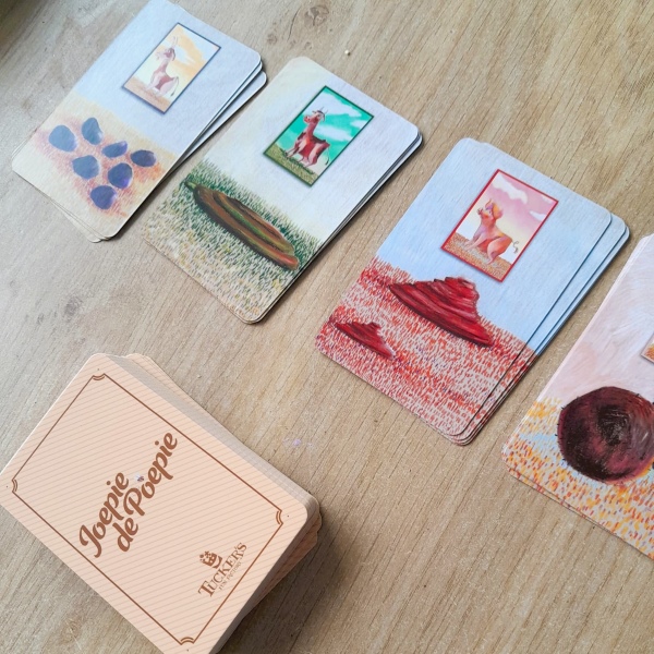 Verder bleven we na het spelen met wat vragen zitten waar de spelregels geen duidelijkheid over geven. Zoals; mag één speler meerdere poepkaarten van hetzelfde dier verzamelen om de anderen dwars te zitten? en; blokkeert de kruiwagen de schep hoe dan ook? Of beschermt hij alleen de speler die de kruiwagen speelt? Al met al ben ik helaas niet reuze-enthousiast over Joepie de Poepie, maar echt slecht is het ook niet.