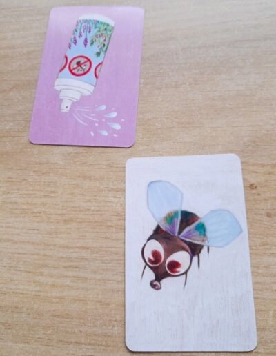With the fly, you can steal one poop card from an opponent. The fly card can be blocked if the other player plays an insect spray card.