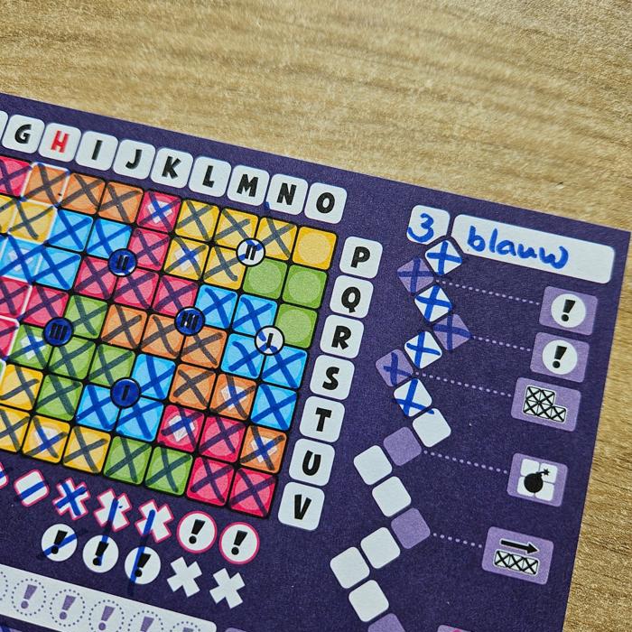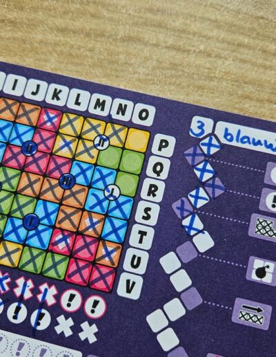 Het solospel speelt in principe hetzelfde als het spel voor meerdere spelers. Je kunt natuurlijk niet als eerste je fiches wegspelen, dus werkt het net iets anders. Je hebt namelijk 30 beurten om zoveel mogelijk X’en te verzamelen.