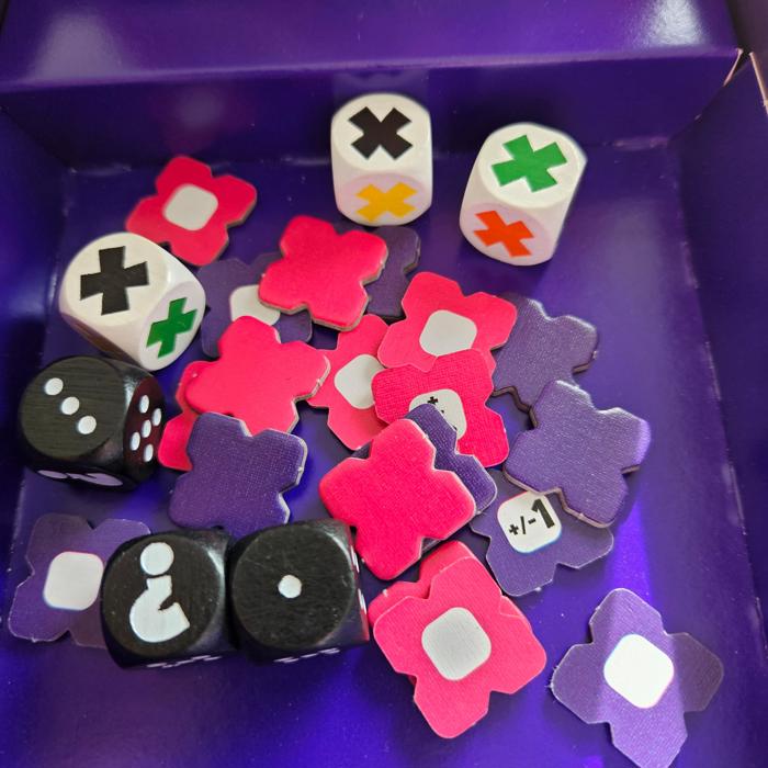 The solo game is played in basically the same way as the multiplayer game. Of course you can’t be the first to get rid of your tokens, so it works a little differently. Instead, you have 30 turns to collect as many X’s as possible.