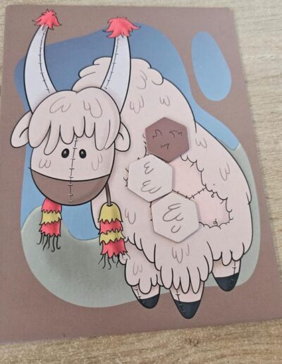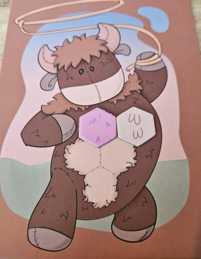 Your cuddly toy gets a shave: remove one of the patches from your cuddly toy and place it face down back on the table. This action is mandatory, so even if shaving really doesn’t suit you at that moment, you still have to do it.