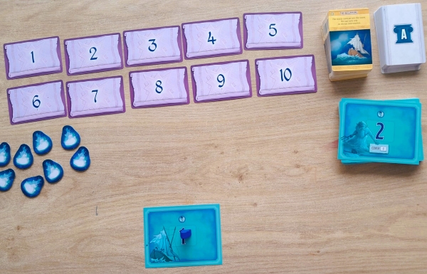 After laying out the components, which takes less than a minute, you start, logically, with setting card 1. Turn it over and the game can begin.