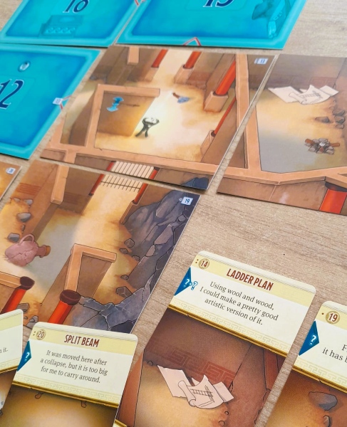 Tijdens het spel plaats je ook regelmatig nieuwe decorkaarten waarmee je je te ontdekken gebied uitbreid. Met je meeple kun je ‘lopen’ om zo de andere decorkaarten te ontdekken en de bijbehorende interactiekaarten te pakken.