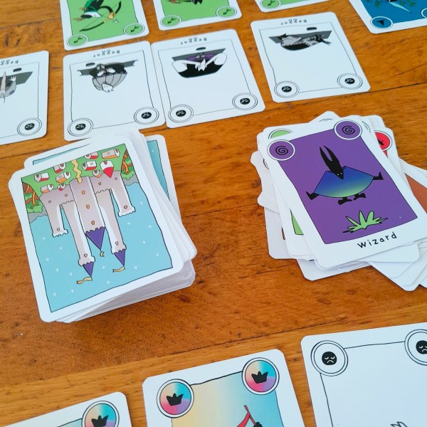 The wide variety of characters with powers has two sides to the game. On the one hand, it makes the game very varied. There are 13 different powers, all of which do something different. On the other hand, they do make the game difficult in the sense that players are constantly looking at the cheat sheet to see which power a particular card can activate. After playing four games, I now know which (approximately) powers there are, but not which character they belong to. This also makes the game more difficult to play with young(er) children, because the reading is too much for them. Could this possibly be solved with iconography on the cards?
