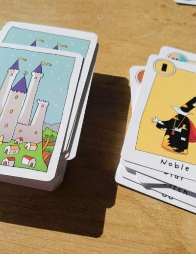 Medievallon consists only of cards, all of which are different. There are 13 characters, each with a different power. The artwork is special, the colors and icons are clear.