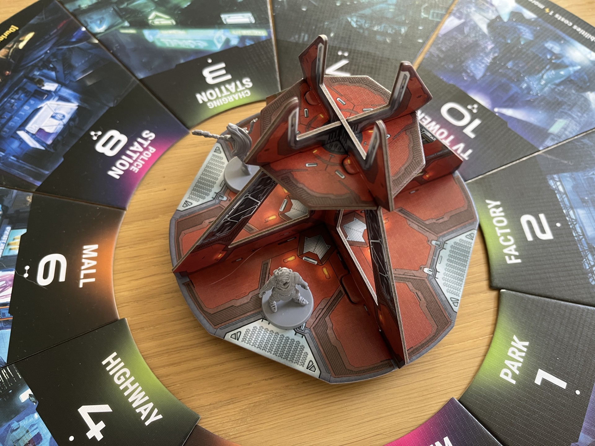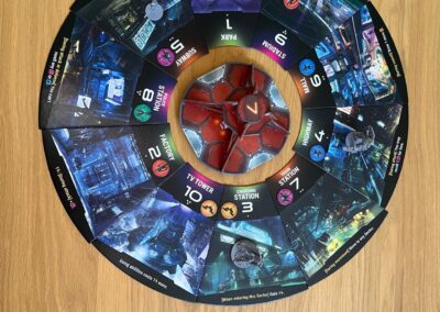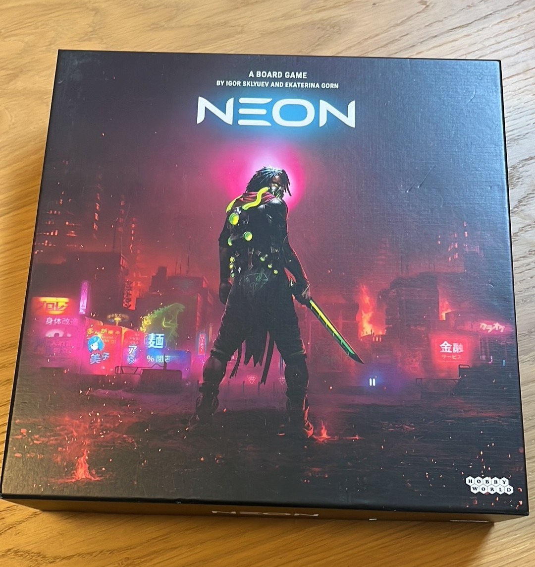 Neon has a specific “cyber” style with lots of, you guessed it, neon colors. This style of illustrations and box cover appeals very little to me, not to say “not at all”, but I’m glad that didn’t stop me from bringing it to the table. Despite the style and theme, I was still pleasantly surprised by the game. The game plays very smoothly, which I thought was very positive, not because it was over quickly. 😉