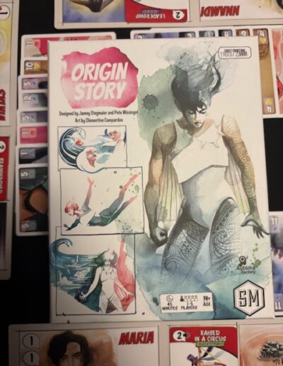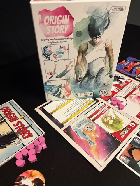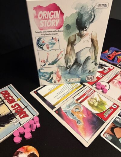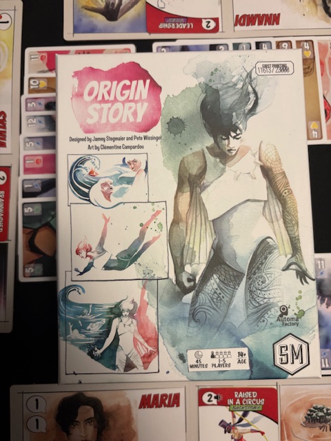 Origin Story is a trick-taking game with all sorts of twists and effects. It strongly reminds me of Rebel Princess.