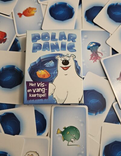 Polar Panic is een kaartspel dat in een iets groter doosje zit. Niet zo groot dat het onzin is, maar wel zo groot dat je de kaarten (hopelijk) langer mooi houdt.