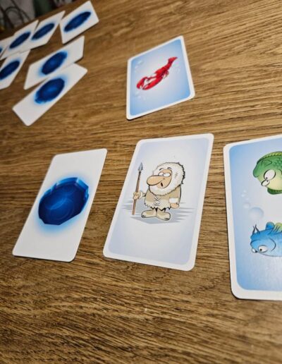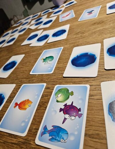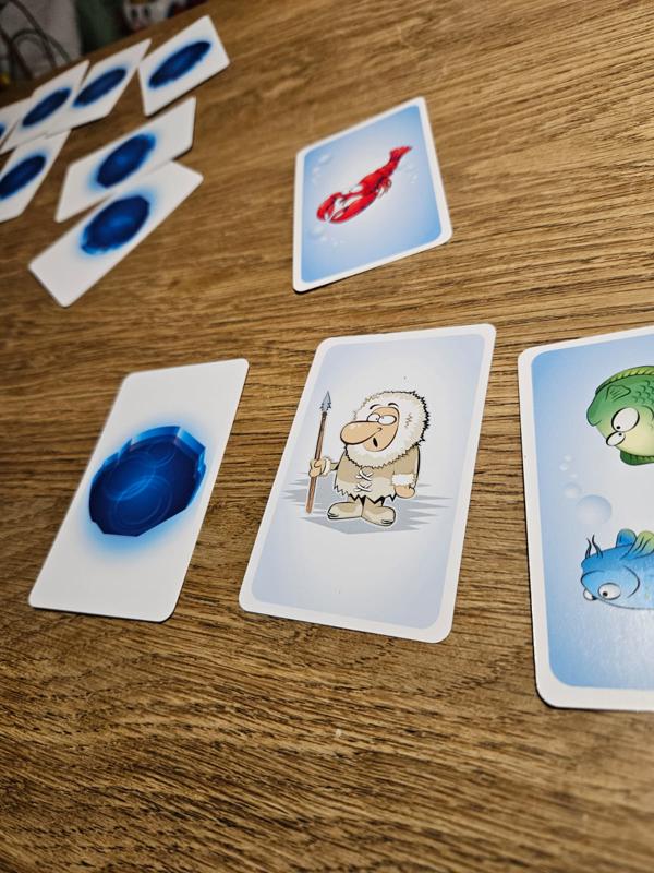 But the fish seem to be quite frightened of the Inuit, because all the open fish cards on the table are turned back to the ice side.