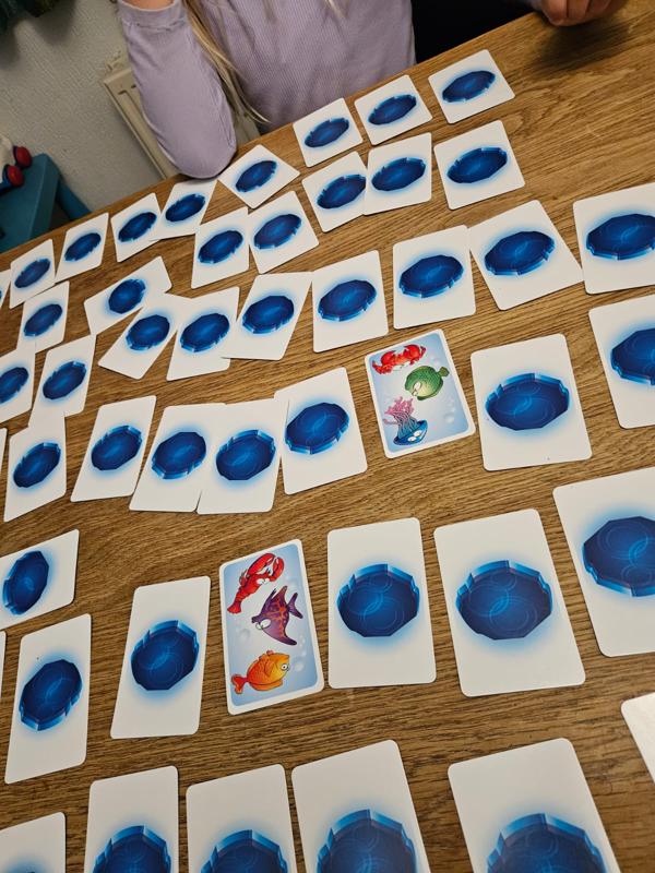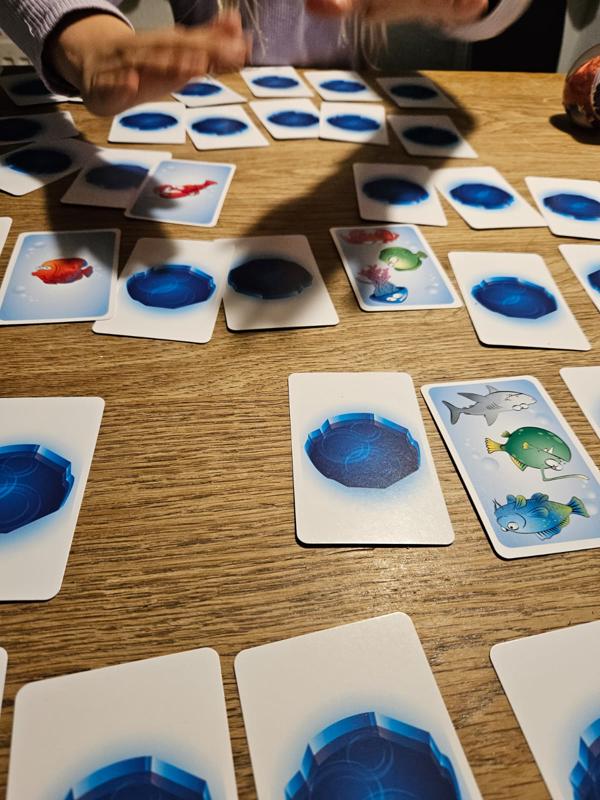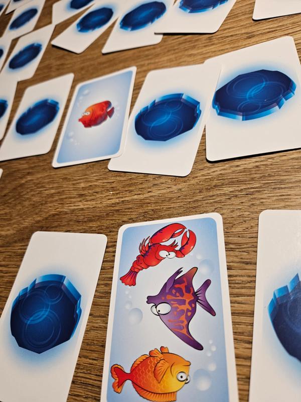 Nu mogen spelers ombeurten een willekeurige kaart op tafel omdraaien. Wanneer een speler 2 dezelfde vissen (op 2 verschillende kaarten) ziet, dan ‘slaat’ hij daarop en mag hij de kaarten houden en op zijn persoonlijke stapel leggen. Tenzij hij het verkeerd heeft gezien. Dan moet hij één van de kaarten van zijn persoonlijke stapel weer gedekt op tafel terug leggen.