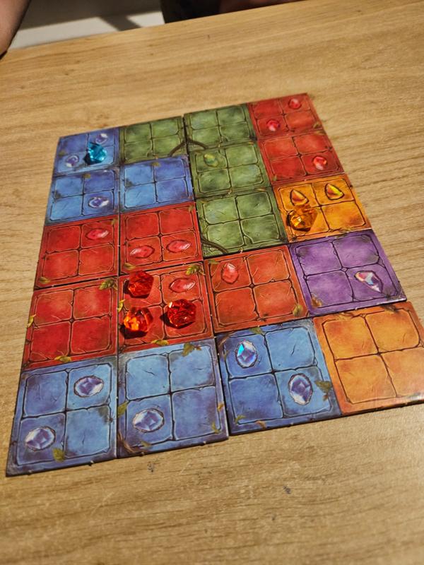 Tactisch is het ook een grappige puzzel, vooral het meenemen van edelstenen (maximaal 5) en het ‘doorbouwen’ van een kleur over verschillende lagen vergt wat inzicht, waardoor het geen saaie puzzel is.