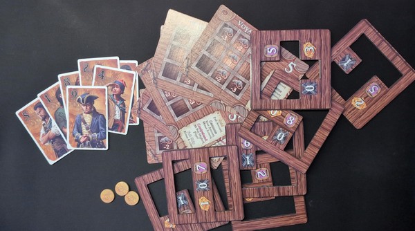 Then the puzzle pieces from Voyage 2 are placed in a tight pile. The cards from Voyage 2 are dealt out as follows: the one with the most money gets Voyage 6 and the one with least money gets Voyage 1. These numbers are shown on the top right of the voyage card. Voyage card 6 is more difficult than voyage card 1.