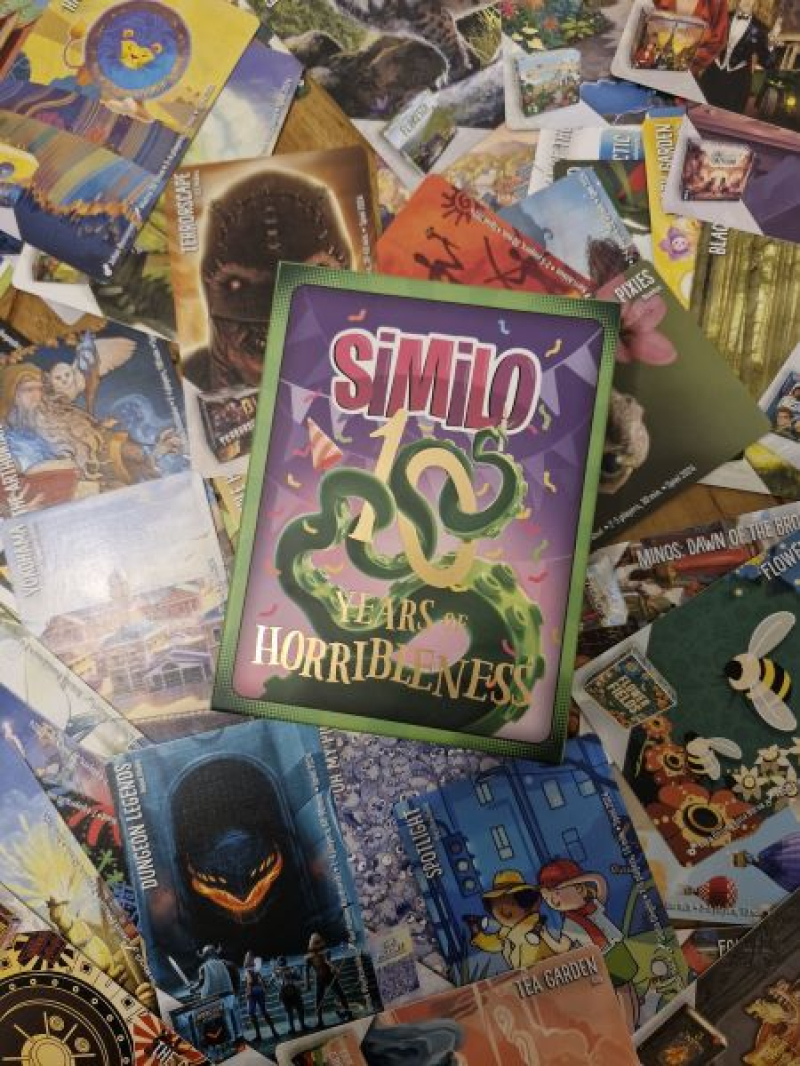 Zelf heb ik niet alle versies in huis. Want dat zijn er inmiddels veel. De vormgeving is altijd even prachtig en zit door de makers zó slim in elkaar er is goed nagedacht over een balans, zodat er ook daadwerkelijk goede hints te geven zijn, dusdanig dat je als je niet uitkijkt op het verkeerde been gezet kan worden. Zelf testte ik de 10 Years of Horribleness uit. Daar was ik een beetje sceptisch over omdat het in feite een soort promo-versie is waarin de spellen van uitgever de Horrible Guild centraal staan, maar eigenlijk is deze versies nu één van mijn favorieten. De diversiteit van de kaarten is zo mooi, dat ik m wat moeilijker en daardoor leuker vind dan eerdere versies van Similo die ik heb. Hetzelfde geldt voor de Board Games 2024 versie.