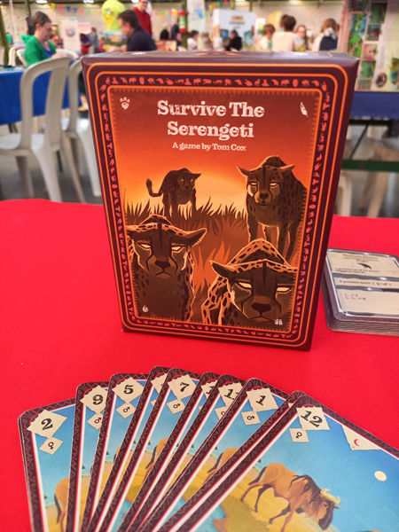 Survive the Serengeti is a fast-paced but tactical card game. It is an art to determine which card(s) to play based on the predators lurking in the shadows. At the beginning of the game, you still have plenty of choices, but towards the end, it becomes more difficult to guide your wildebeests safely through the Serengeti. You do have a huge advantage if you can remember which wildebeests have already been taken by whom. That can also determine which card you should play in which round.