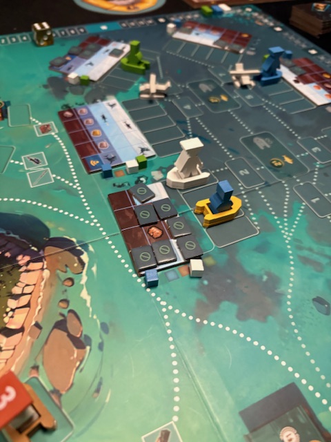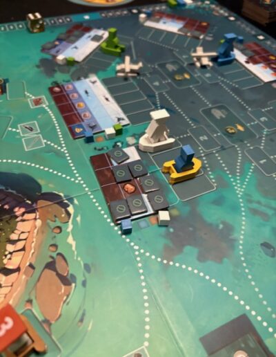 Thesaurus pleasantly surprised me. I love a good game that applies the theme well. And that’s certainly the case here. The actions correspond with treasure diving. You need supplies, treasure maps, and a boat. You sell your treasures to the museum. It all makes perfect sense. The individual actions aren’t complicated; it’s mainly the sheer number of choices that makes Thesauros a game for experts. Managing your money, and thus depositing it into bank accounts, requires a lot of planning ahead. This will naturally become easier the more you play Thesauros. It looks beautiful and plays well. Oh, how wonderful it is to uncover a beautiful treasure and immediately put it in your plane, only to then deposit it in the museum in the same round. You feel like a true explorer!