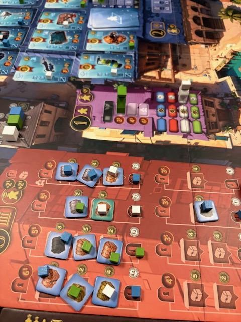 - Het museum. Hier verkoop je je schatten voor geld en elke plek in een tentoonstellingszaal levert aan het einde van het spel overwinningspunten op. Als eerste moet iemand wel een tentoonstellingszaal financieren voordat er schatten tentoongesteld kunnen worden.