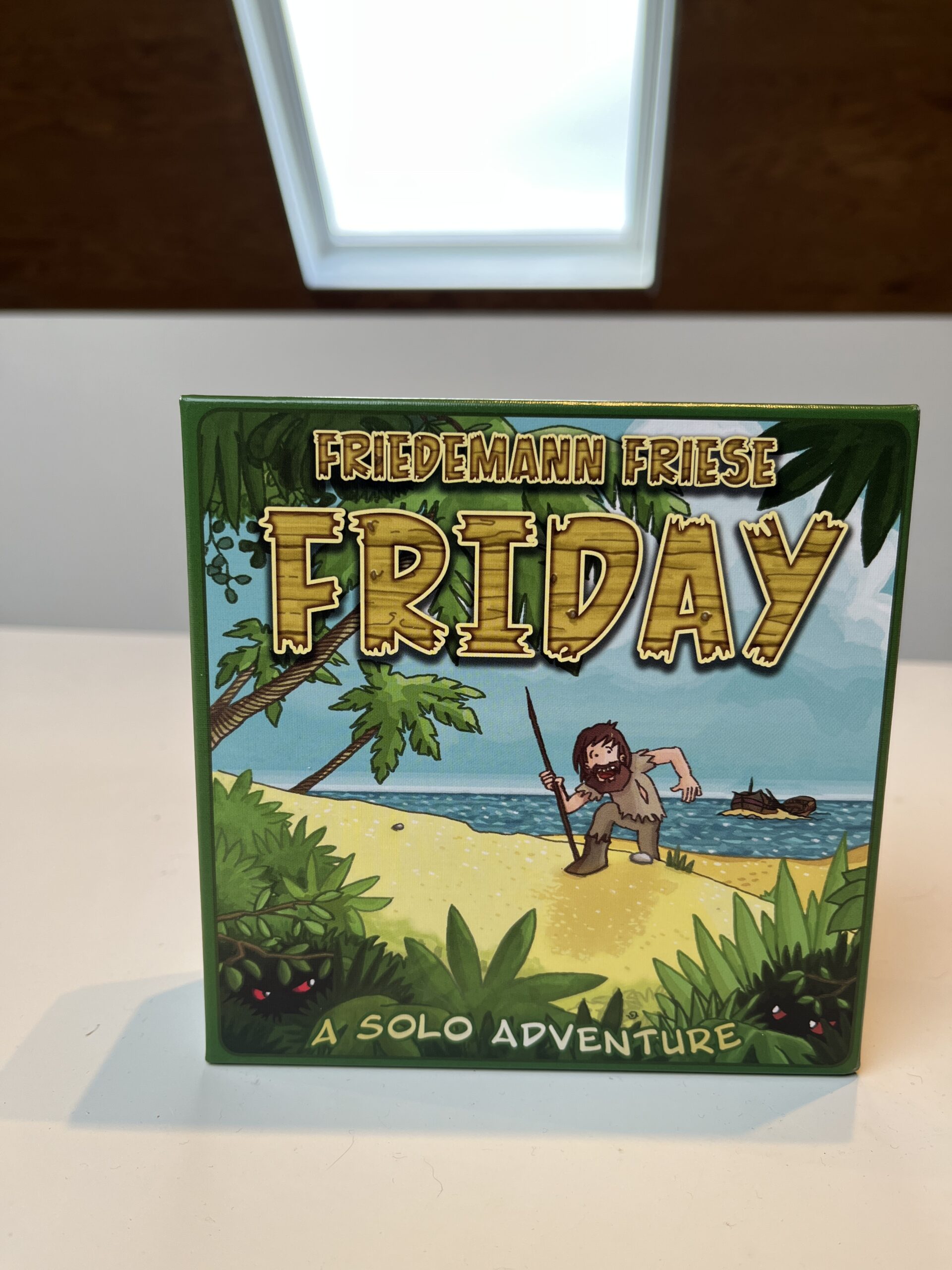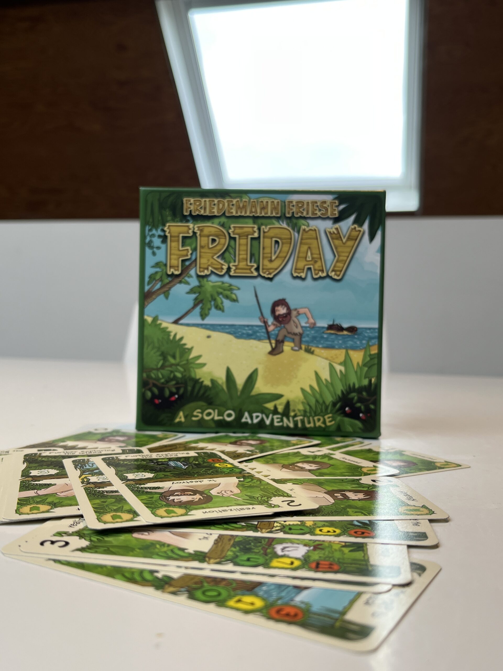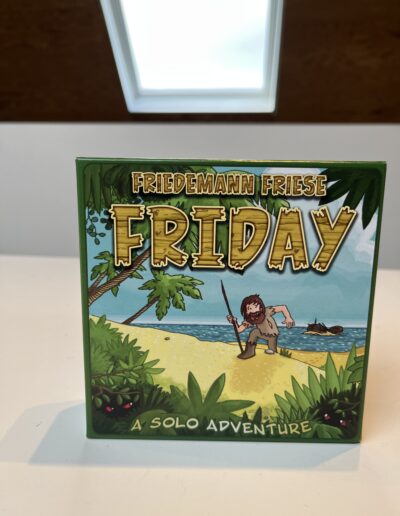 Vrijdag is een fijne solo deck builder waarbij je jezelf en je deck probeert te pushen om toch maar het volgende gevaar te passeren. Ik ben duidelijk nog niet ervaren in het spel, maar heb me er zeker mee geamuseerd. Deck-building is een van mijn favoriete mechanismes en dit geeft het spel meteen ook meer krediet bij mij. De tekenstijl is niet helemaal mijn smaak, maar het maakt alles een beetje “silly” wat erg goed past bij hoe dit spel speelt. Je kan heel vlot bepaalde gevaren overwinnen, maar net zo goed heel hard verliezen bij een heel eenvoudige hindernis. Maak de juiste beslissingen en wordt de held van het eiland door de piraten te verslaan.